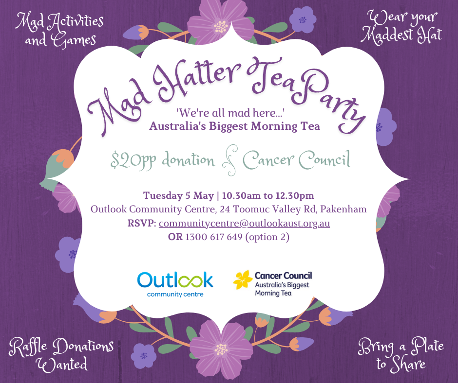 We're all mad here... Let's get together for Australia's Biggest Morning Tea to raise funds for the vital research and support of Cancer Council Australia